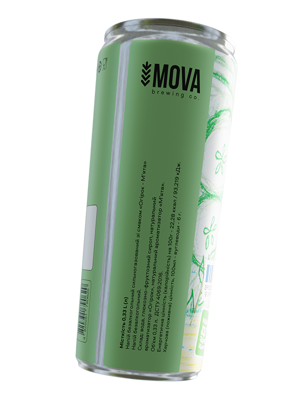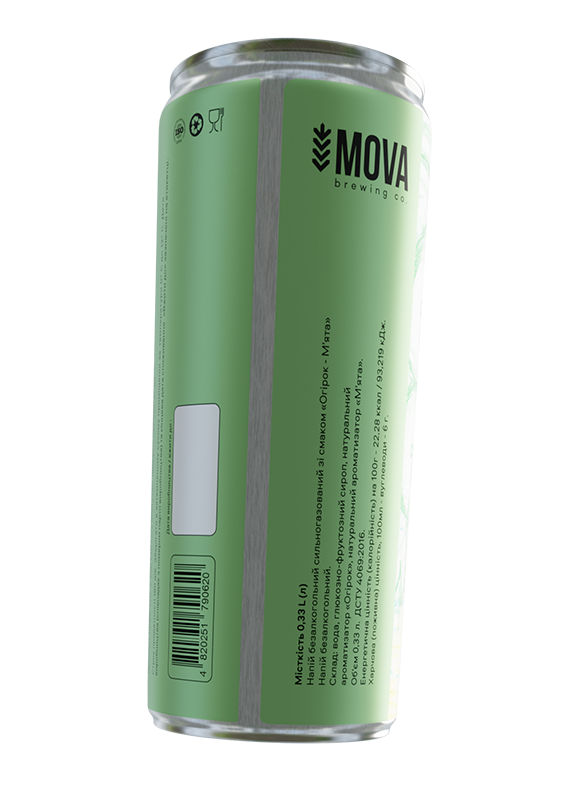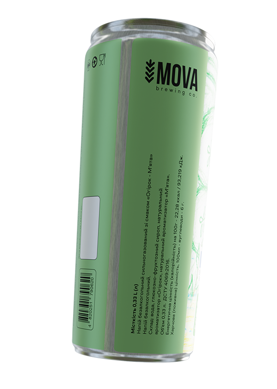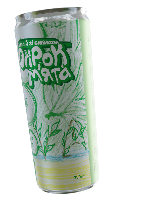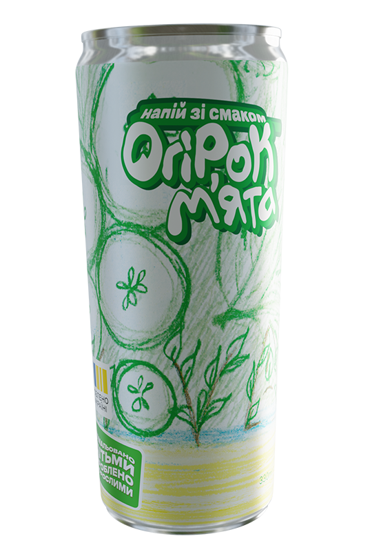 Огірок-м’ята. Безалкогольний сильногазований напій з оригінальним смаком. Свіжий аромат та смак огірка доповнюється ледь помітною м'ятною прохолодою в посмаку.